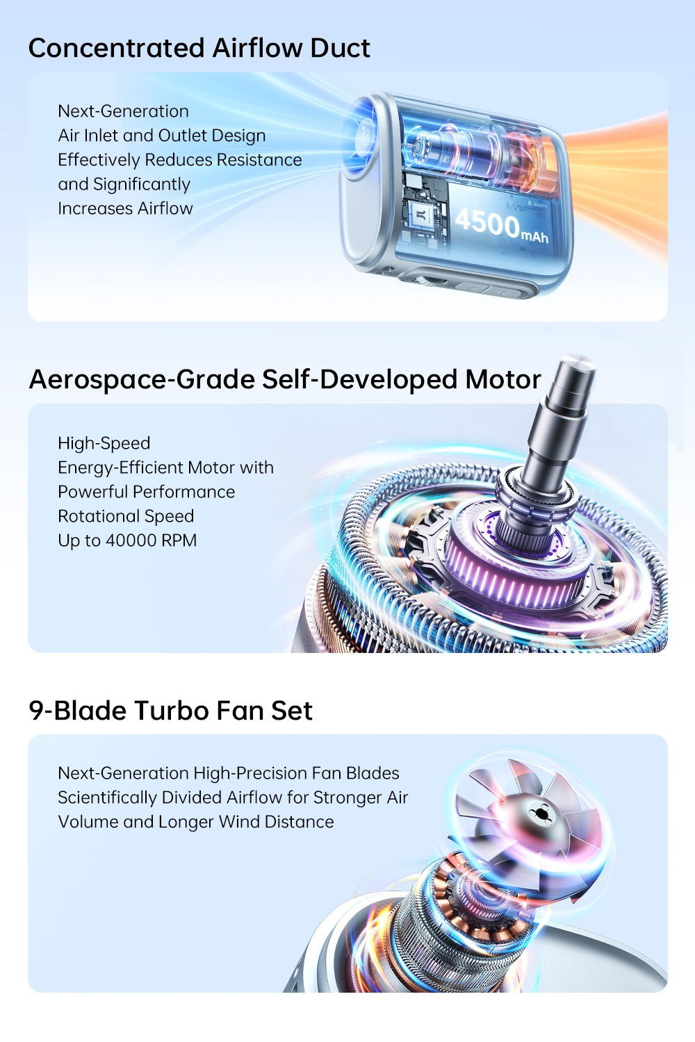 100 speeds, 4500mAh battery, and bladeless cooling for all-day comfort.